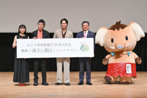 映画『赤土に眠る』トークイベントが、群馬県・みどり市の笠懸野文化ホールで開催された『みどり市市制施行20周年記念式典』内で行われた。